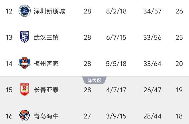 最新积分榜方面,保级形势发生微妙变化,倒数的3支球队呈现等差数列排布。亚泰本场3分变1分后积19分,终于摆脱了积分榜垫底,先赛一场的情况下升到倒数第2,本轮惨败的梅州客家20分排在倒数第3,还未出战的青岛海牛18分垫底。这个结果对于深圳新鹏城来说无疑是非常有利的,因为他们距离提前保级又近了一步。倒数3支球队各差1分,现在就看最后出战的海牛了,机会已经摆在眼前,本轮客战工体是非常好的改写命运的机会。