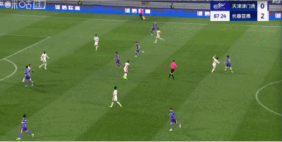 下半场一开始,津门虎便做出换人调整,王献钧登场换下杨帆,黄嘉辉回撤到中卫位置,谢维军继续与基莱斯搭档双中锋,球队阵型变成532。
