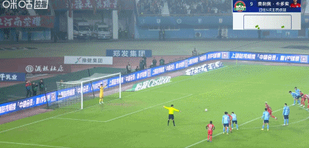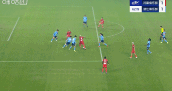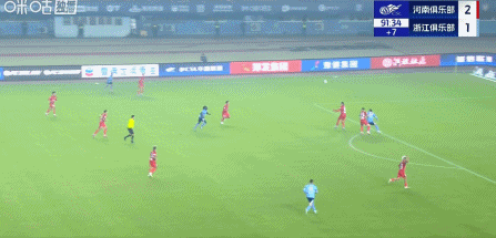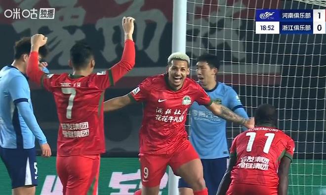 河南队2-2浙江队第18分钟,卡多索左路长途奔袭杀入禁区打门被扑,李提香不慎自摆乌龙,河南队1-0!
