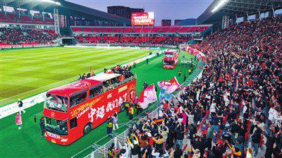 在一阵阵“辽宁冲超”的欢呼声中,搭载着辽宁铁人队将士的花车在铁西体育场内绕场一周,将辽沈足球胜利的欢庆氛围推向高潮。 10月26日,辽宁铁人队1比0主场战胜南通支云队,提前两轮获得2025赛季中甲联赛冠军并冲超成功。时隔2913天,辽沈足球终于重回中国男足顶级联赛序列! 本场比赛的决定性进球发生在下半场开场仅3分钟,高嘉润送出直塞,日本外援邦本宜裕带球至禁区线拔脚怒射,皮球直挂死角锁定胜局。夺冠之后,铁西体育场变成了欢乐的海洋,现场大屏幕打出“长风破浪会有时。中超我们来了!”球迷们则打出“中超我们回来了”“我们是冠军”的巨幅标语。 在25189名球迷高喊“辽宁冲超”的声浪中,主教练李金羽眼含热泪冲进场内,与队员们庆祝,很多人流下了幸福的泪水。辽宁铁人队能够冲超成功,李金羽功不可没,队员将这位头号功臣围在中间一次次抛向空中庆祝。 为了庆祝提前夺冠冲超,辽宁铁人俱乐部精心设计了花车巡游环节,将士们登上两辆精心装饰的花车绕场一周感谢广大辽沈球迷的一路陪伴,李金羽和队员们向着球迷不停挥手致谢。全场球迷打开手机手电筒,将铁西体育场变成灯海,照亮辽宁铁人队更加璀璨的未来。 冲超日,沈阳天气虽冷,但铁西体育场25189名球迷却内心火热。辽沈球迷会的会员周毅甚至在中场休息时向女友求婚成功,两位球迷情侣在辽宁铁人队冲超的喜庆日子里双喜临门。 辽沈球迷会会长何大鹏说:“2017年,辽宁宏运队从中超降级,我的心情无比沉重。8年之后,辽沈足球重返中超,我们无比骄傲!辽宁铁人队蒸蒸日上,辽宁足球正在全面复兴,明年中超,辽宁球迷将为心爱的球队献上更强的呐喊。” 赛后的新闻发布会上,李金羽难掩激动,他表示,这场比赛无需过多点评,因为胜利属于辽宁人民,“我们等待这一天,太久了!这是辽宁铁人队为家乡献上的一份厚礼,更是为辽宁省、沈阳市的争光时刻。说句心里话,冲超的过程并不容易,我们也是克服了一个个困难才走到今天。感谢所有支持我们的人。” 李金羽特别感谢了辽宁省、沈阳市相关部门对俱乐部的大力支持,“在辽宁‘振兴三大球’的背景下,足球作为最重要的项目承载着重要意义,没有政府的支持,就没有辽宁铁人队的现在,这是球队能够成功的关键。” 喜悦之余,李金羽也保持着清醒:“必须清楚,这只是辽沈足球复兴的一小步成绩,球队仍面临诸多挑战。明年的中超联赛,我们是机遇与挑战并存,俱乐部必须全力做好球队运作,通过强有力的引援提升球队实力,争取好成绩,让更多球迷支持我们。”
