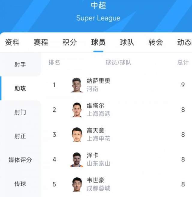 早在上个赛季,纳萨里奥作为中游球队的外援,就贡献了12个助攻,仅次于奥斯卡排在助攻榜第2位,今年,没有了最强竞争对手奥斯卡,纳萨里奥非常有希望冲击自己第一个中超助攻王。不得不说,河南队的引援眼光确实毒辣,这名身价150万欧的前德甲外援真买值了!(老邱)