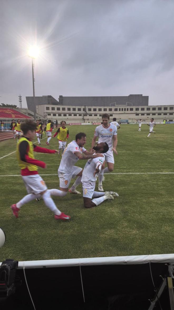 庆祝进球。随着主裁判一声哨响,重庆铜梁龙以中甲第二名升入中超,重庆足球时隔1265天重新回到中国足球顶级联赛!上游新闻记者 赵映骥 文图