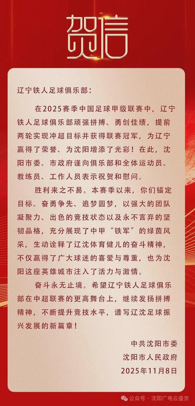 辽宁铁人队提前两轮获得本赛季中甲联赛冠军同时锁定2026赛季中超联赛参赛资格
