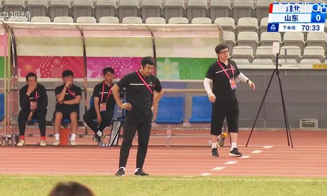下半场开场后,韩鹏用陈泽仕换下依木兰,这一调整有待商榷。杜月徵也替补上场,有过征战中超经历的高中锋彭逸翔以及王昊斌也披挂上阵,但山东队仍然无力撕开对方防线,彭逸翔接近2米的高点,边路却无法提供有效的火力支援,高中锋孤立无援!第91分钟,替补上场孟繁宁在争抢界外球时铲倒杨希,主裁判判点,范绪林主罚命中,湖北队1-0绝杀山东!