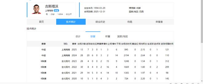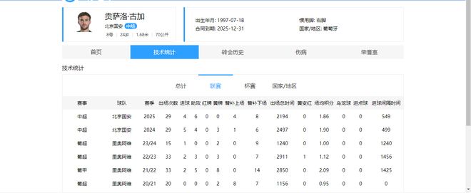 在签约费高,且技术特点不明显,同位置的外援达万也能起到一样作用的情况下,古加自然不具备性价比。截止中超29轮,古加共代表国安出场29次,累计打进4球,送出6记助攻。