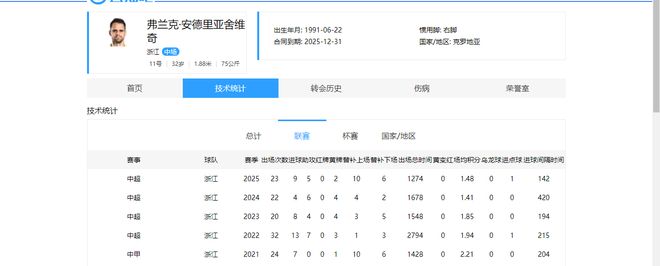 现今34岁的弗兰克,本赛季出战23场联赛后,打进9球,送出5记助攻,状态依然在线。本赛季可能是他在浙江队的终点,但不一定是他职业生涯的终点。