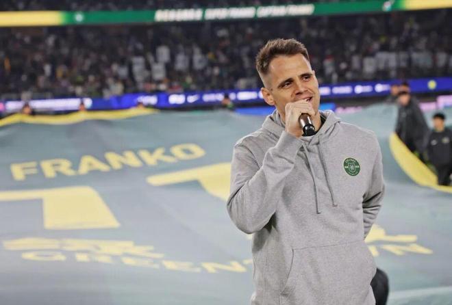 对海牛的那场比赛,是弗兰克第140次,也是最后一次为浙江队出场,至此,他贡献了50个进球和26次助攻,帮助球队升级中超、闯进足协杯决赛、跻身亚冠正赛。真正道别的一刻,两种情绪复杂交织。“一是伤感,因为这是我代表球队的最后一场比赛;二是自豪,4年半的时间里,我做出了自己的贡献。”弗兰克说。即便是打替补的这个赛季,弗兰克也交出了11粒进球、5次助攻的出色成绩单。“我希望在有限的时间里,为浙江球迷展示最好的状态。”前两个赛季,他曾饱受伤病困扰,“今年俱乐部医疗团队的保障非常棒,让我能保持良好的身体状况和运动能力,而且我发现,内心的竞技之火还在燃烧。”弗兰克的告别战近乎完美,出场68分钟三次破门,尽管有两次被VAR判定无效,但依旧有一个漂亮的头球留在了这里。赛后,站在场地中央巨大的11号球衣前,弗兰克向全场超过2.8万名观众表示感谢,几度泪下,最后,他用中文领唱《月亮代表我的心》,全场随唱。最终,弗兰克转身,谢幕。2021年,俱乐部副总吴少堃前往克罗地亚,考察弗兰克。“那天我运气不错,为里耶卡打进了一个球,还有两个助攻。”弗兰克回忆说。到中国后正值疫情期间,他被隔离了三周,那段时间,总经理焦凤波和他多次面谈,俱乐部也给了他很多帮助。所以,效力浙江队的4个半赛季里,他彻底回报了这份信任,而且“没有任何遗憾”。尽管目前还没有明确去向,但弗兰克不想退役,也不想离开,而是希望留在中超。“我非常喜欢中国,对这里联赛的环境也非常熟悉。”他说虽然不想和C罗、莫德里奇这样的巨星比,但超过40岁继续踢球的球员并不罕见,何况,他完全感觉不到身体机能、竞技状态在下降。