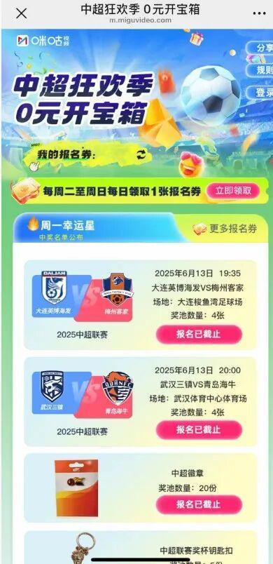 贯穿整个赛季,咪咕还推出了一系列的活动,包括:“中超开宝箱”福利活动,结合地域特色推出定制礼物、竞猜榜等互动,联动福袋活动与限量球星卡玩法;推出打造16支俱乐部专属主队专区,以“抽门票”为核心福利,强化“我的城市我的队”情感联结;构建咪咕、中国移动各省分公司与球迷会的“黄金三角”合作模式,以上海移动为例推出5G-A专享包、联名厅店及观赛活动,打造“观赛-转化-留存”的完整生态闭环。