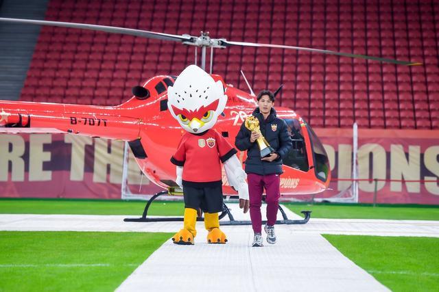 2025赛季,上海海港以20胜6平4负、积66分的优异战绩成功卫冕中超冠军,继2023、2024赛季后实现“三连冠”伟业,将第四颗冠军星荣耀绣上队徽。赛季征程中,蒋光太、李帅达成代表俱乐部出战百场的里程碑成就,门将颜骏凌更是以五百场出战记录,生动诠释了“一人、一城、一队”的坚守与担当。老中青三代球员携手并进,用汗水与拼搏铸就了这个属于海港大家庭的冠军之年。仪式感拉满!低空送杯+奖杯矩阵定格荣耀总结会在悠扬的交响乐曲中拉开帷幕,俱乐部吉祥物伊戈率先登场暖场,海港一线队全体教练员、球员与工作人员在全场热烈欢呼声中集体亮相。激动人心的夺冠视频播放完毕后,载有队长王燊超与火神杯的临港捷运纪念版直升机从川沙飞抵球场,这一“低空+足球”的创新环节,不仅展现了冠军荣耀,更成为俱乐部探索体旅融合新范式的生动实践。随后,王燊超与上海海港足球俱乐部党总支书记、总经理沙良昌共同将新赛季冠军奖杯安放于奖杯柱顶,与三座往届火神杯组成“冠军奖杯矩阵”,全场掌声与欢呼声经久不息。致敬功勋与恩师,温情瞬间暖动全场