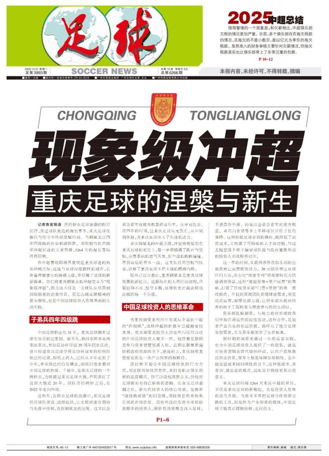 本期特刊《现象级冲超,重庆足球的涅槃与新生》点击下方小程序即可购买数量有限 欲购从速