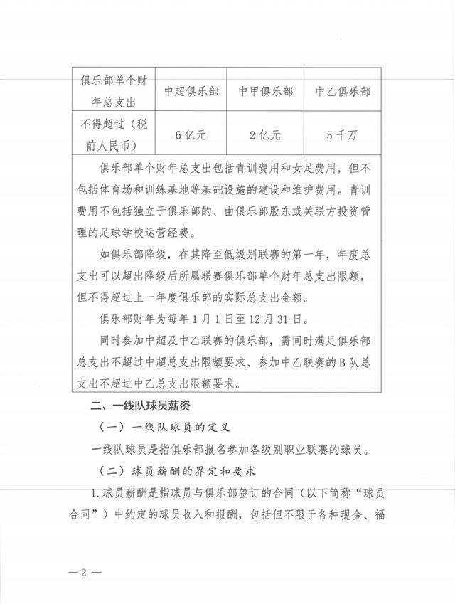 中足联出台新规:中超球队单财年总支出税前不得超过6亿元,中甲不得超2亿、中乙不得超5000万