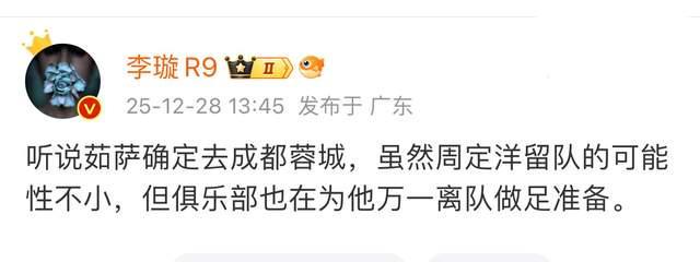 中超今年各队互相挖角,成都蓉城的后卫李扬和海港联系在了一起,成都和海港后腰茹萨产生联系。上个赛季,成都的策略也是从中超球队挖人,只不过看走眼了,引进了降级队的外援卡隆,结果来了就伤了,夏窗也没有相应的补强,错过了夺冠的好机会。明年韦世豪、罗慕洛和费利佩等进攻核心将会留队,主力攻击阵容稳定,主要在于中后场的人员流失。